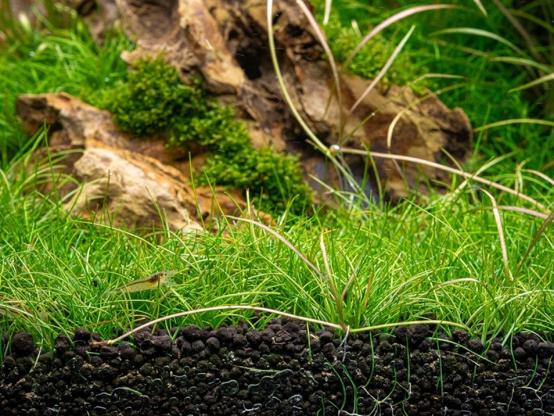 CO₂ ist nicht zwingend erforderlich, aber sehr empfehlenswert. Mit CO₂ wächst die Zwergnadelsimse deutlich schneller und dichter. Wachstum ohne CO₂ - Zugabe ist auch möglich, aber der Teppich wird nicht so dicht.
