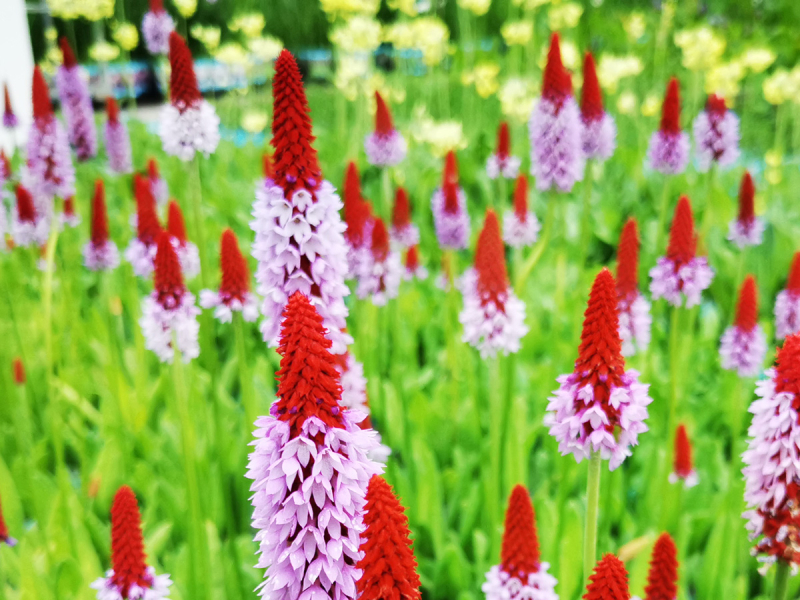 Die Orchideenprimel - Primula vialii begeistert mit ihren zweifarbigen Blütenständen, die von Mai bis Juni und manchmal sogar auch noch im Juli erscheinen. Mit einer Wuchshöhe von bis zu 20 bis 40 cm eignet sie sich hervorragend für halbschattige Standorte am Teichrand oder in feuchten Gartenbereichen. Ihre Blüten sind nicht nur ein optisches Highlight sondern auch eine wertvolle Nahrungsquelle für Bienen und andere Insekten.