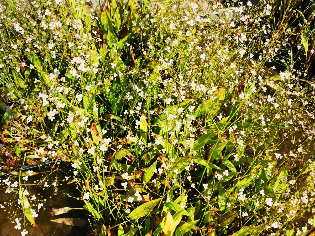 Die Teichpflanze schmalblättrige Froschlöffel - Alisma lanceolata jetzt kaufen und sicher verpackt per Paket nach Hause geliefert bekommen.